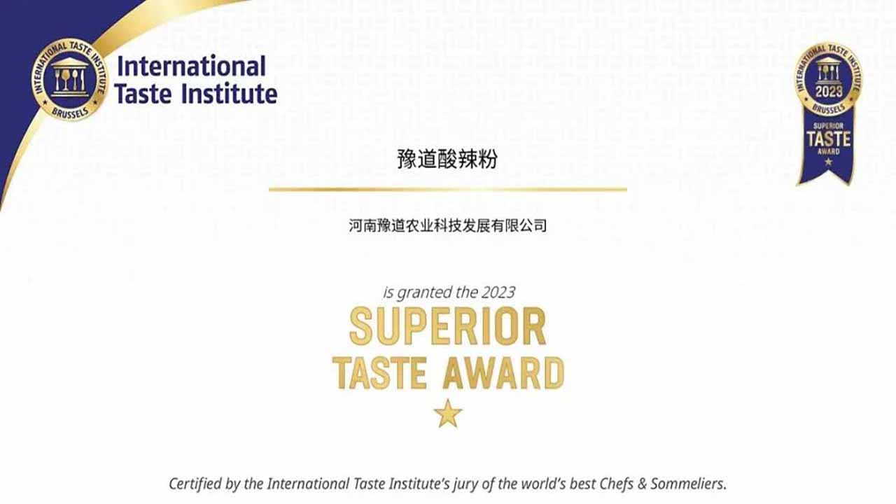 2023年刚刚过去不到10天,豫道荣誉墙上又镌刻上了一道全球级的殊荣,远在万里之遥的比利时布鲁塞尔传来佳音:豫道黑金酸辣粉征服全球顶尖米其林大厨味蕾,摘星“食品界奥斯卡”(顶级美味大奖)。值得一提的是,在继去年12月27日豫道在第十九届中国国际农产品交易会上荣获全国权威大奖--“农交会金奖产品”之后不足半月间获得的又一项权威顶级奖项,更是代表中华美食走出国门的一次华丽展示,颇有“天下谁人不识君”之意。